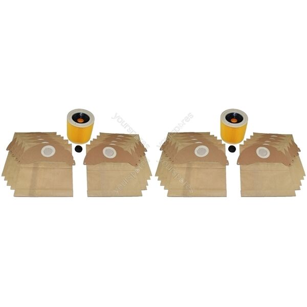 20 x Wet & Dry Vacuum Dust Bags & 2 Filters Fits Karcher A2014 CAR VAC