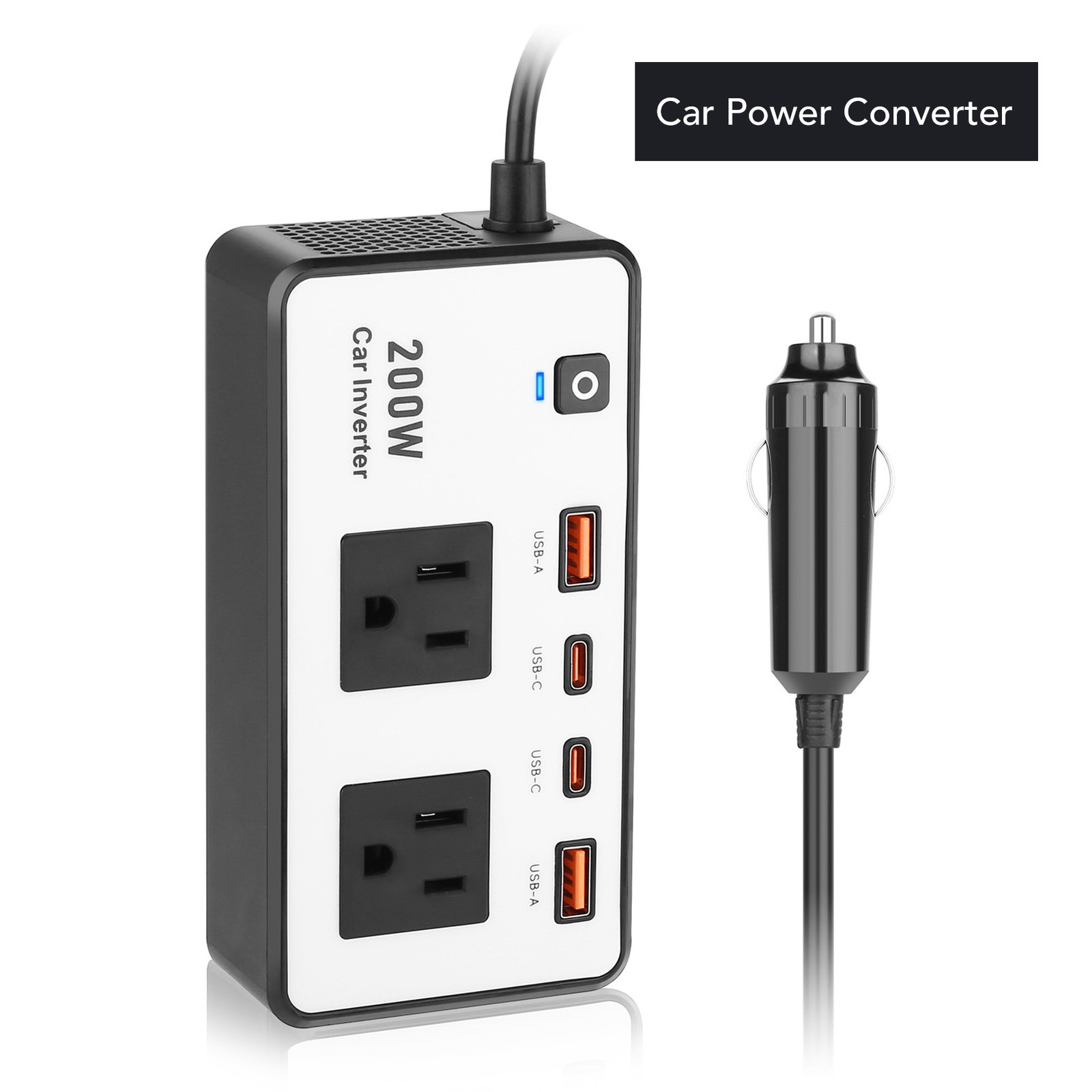 ɪVehicle Power Converter 200W 12V DC To 110VAC Car Adapter Car Outlet Converter