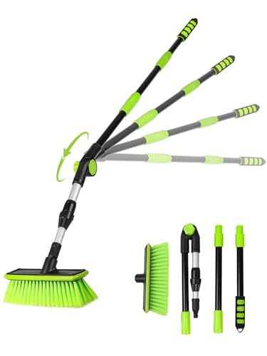 Car Wash Brush 12" with Long Handle with Soft Bristle Scrub Brush for Car, Truck, Boat, RV, House Siding, Deck Camper Exterior Washing Cleaning Green