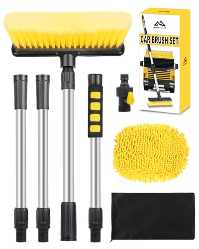 mtbtour Car Wash Brush Long Handle, 65" 165 cm Water Fed Car Wash Brush with Replaceable Mop Head, Storage Bag, Car Washing Brush for Caravan Cars RVs Trucks Windows