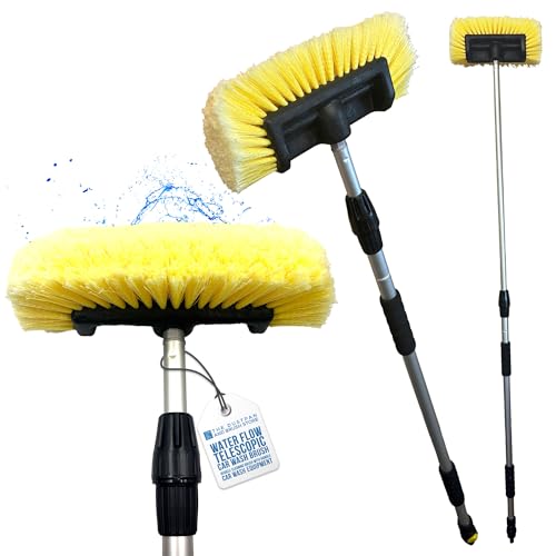 Water Flow Car Wash Brush Long Handle - 2 Section Telescopic Pole - 191 cm Extendable Soft Bristle Brush - Car Cleaning Kit with Built-In Hose Attachment for Cars, Vans, Lorries, and Caravans