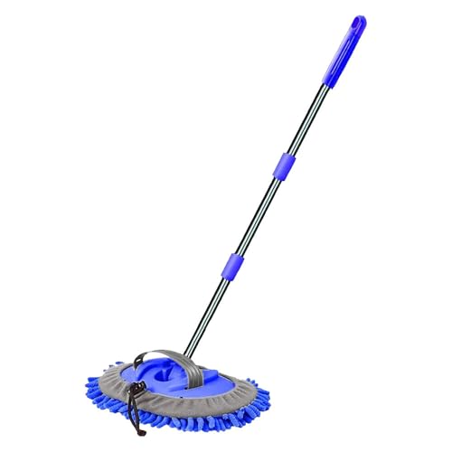 WillingHeart 47.5" Car Wash Brush Mop Cleaning Tool with Long Handle Kit for Washing Detailing Cars Truck, SUV, RV, Trailer, Boat 2 in 1 Chenille Microfiber Sponge Duster Not Hurt Paint Scratch Free