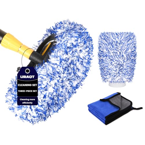 URAQT Car Wash Brush Cover, 4 Pack Microfiber Car Wash Kit, Multifunctional Car Wash Tool with Car Drying Towel and Car Wash Gloves for Cleaning Cars, SUV, Truck, Caravans and Household Cleaning