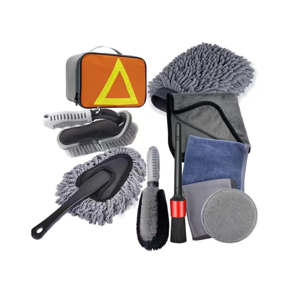 Automotive Cleaning Kit 9-Piece Car Wash Set Tire Brushes Towels Waxed Cotton Gloves For Interior Exterior Wheels