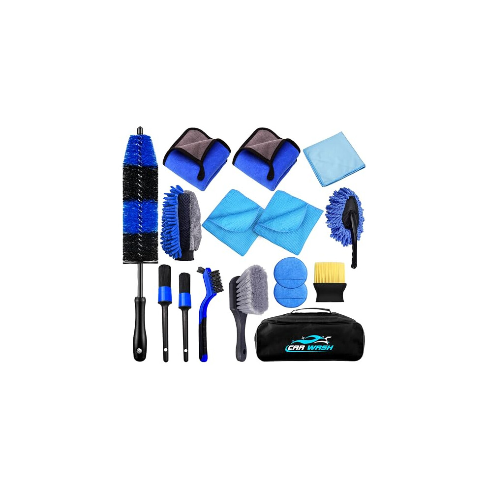 Complete Car Detailing Set with 17 Brushes Wash Mitt and Towels for