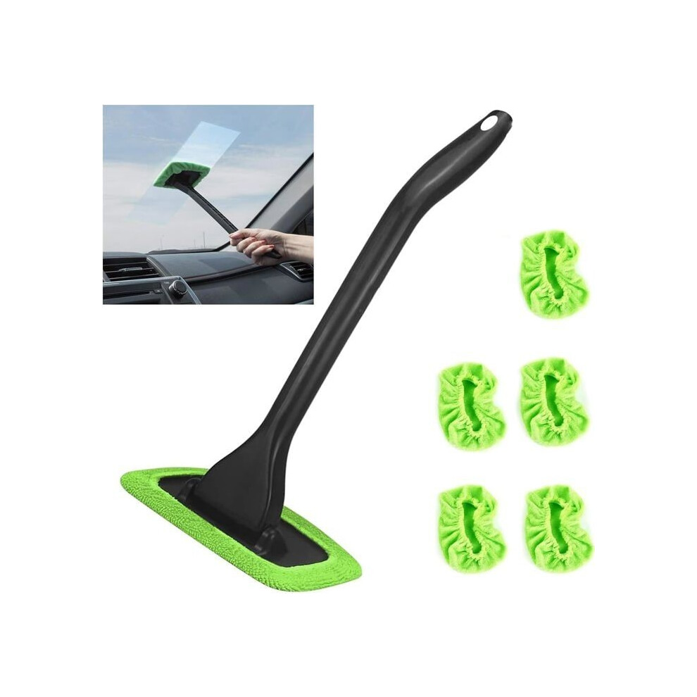 Windscreen Cleaning Tool Pack of 5, Window Cleaning Stick, Reusable Cleaning Cloths for Car Interior, Green Wash Brushes