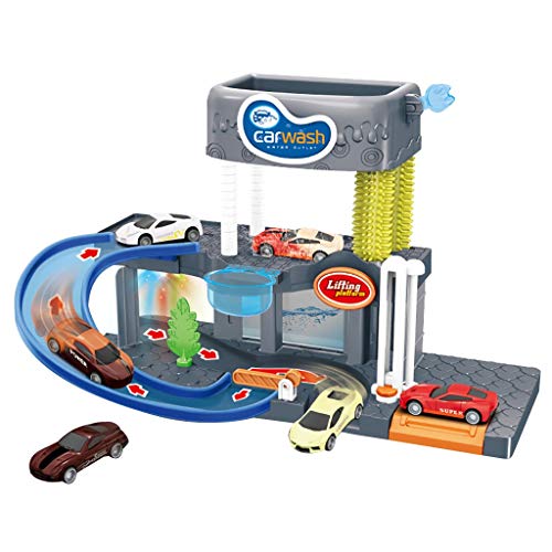 Automatic Toy Car Wash Set with Interactive Lift and Color Changing Alloy Vehicles for Kids Car Care Play (Grey, One Size)