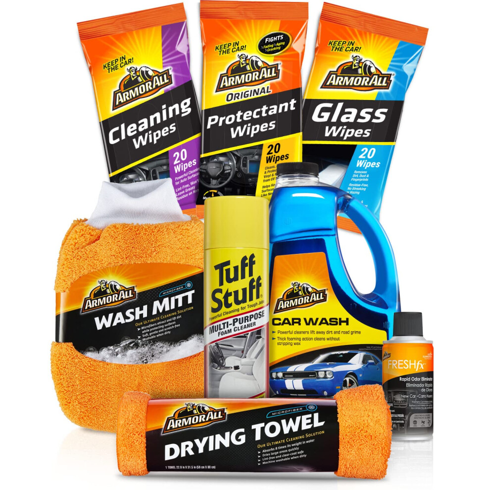 Armor All Car Wash and Cleaner Kit Includes Cleaning Wipes for Car Interior Cleaner Concentrate Car Air Freshener Microfiber Towels (8 Piece Kit)