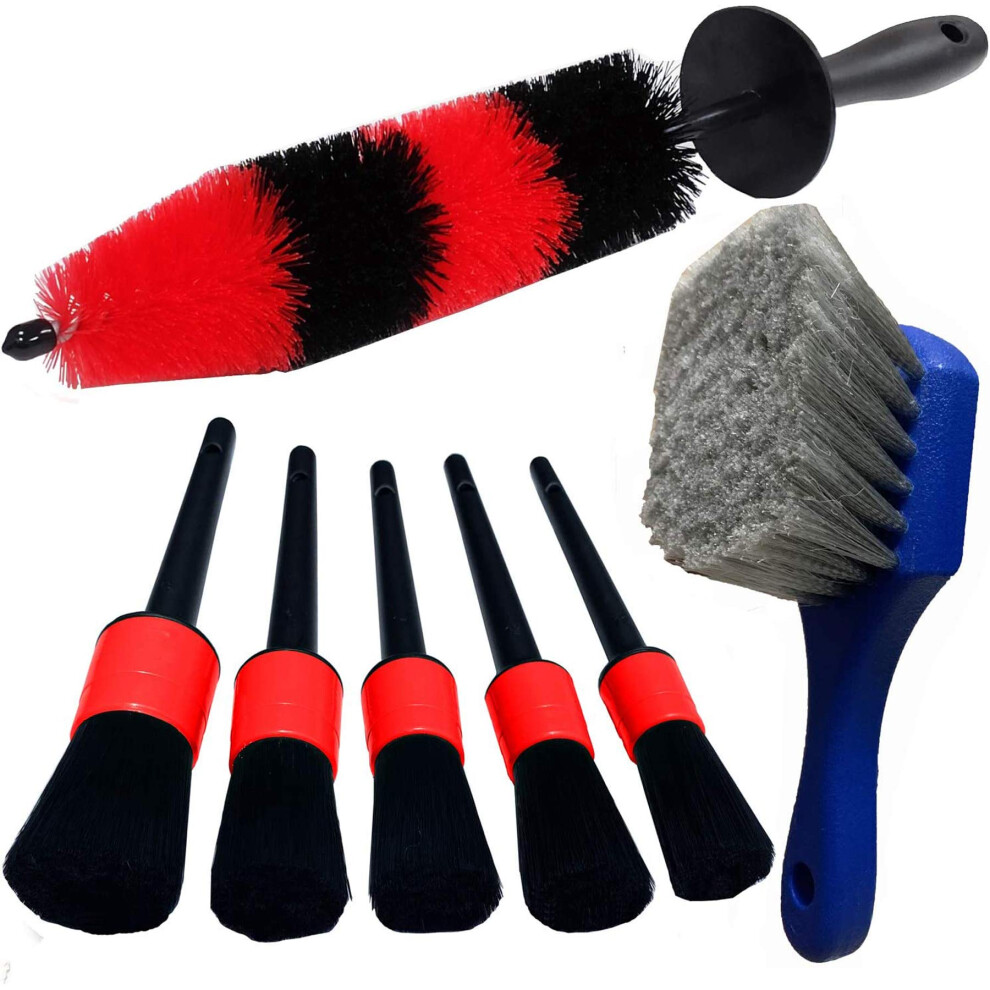 LUCKLYJONE 7Pcs Wheel & Tire Brush car Detailing kit 17inch Long Soft Wheel Brush 5 car wash Detail Brush car wash kit for Cleans Dirty Tires & Rele