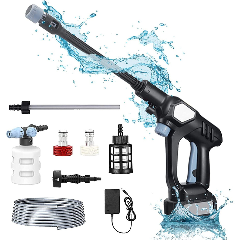Cordless Pressure Washer 45Bar, 21V 4.0Ah with 6-in-1 Nozzle, Foam Pot, 8m Reach - Portable Car Wash & Cleaning Kit