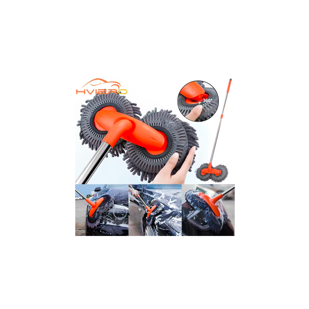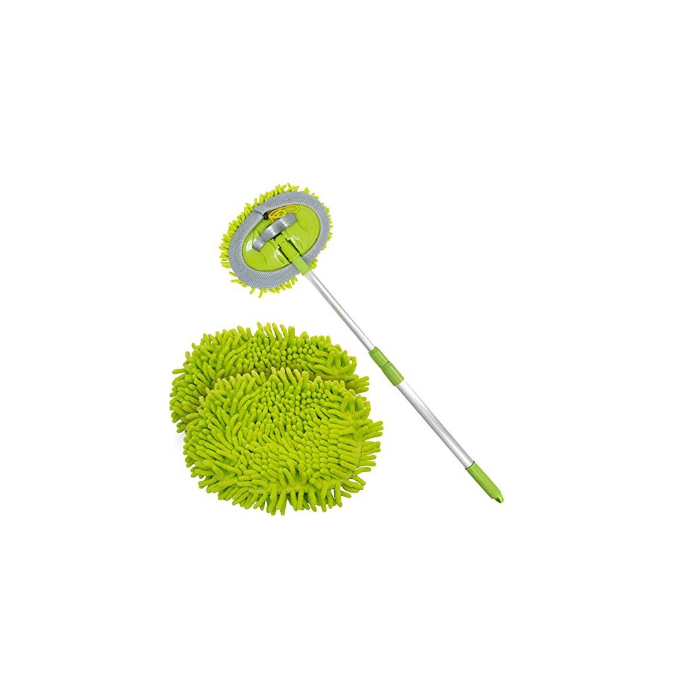 62-Inch Telescopic Car Wash Brush Kit with Aluminum Handle, 180 Adjustable Mop Head, 2 Microfiber Chenille Replacement Heads