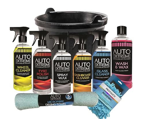 9pc Car Cleaning Kit, Wash kit, valet, Wash & Wax Set, Drying Towel Cleaning Mit Bucket