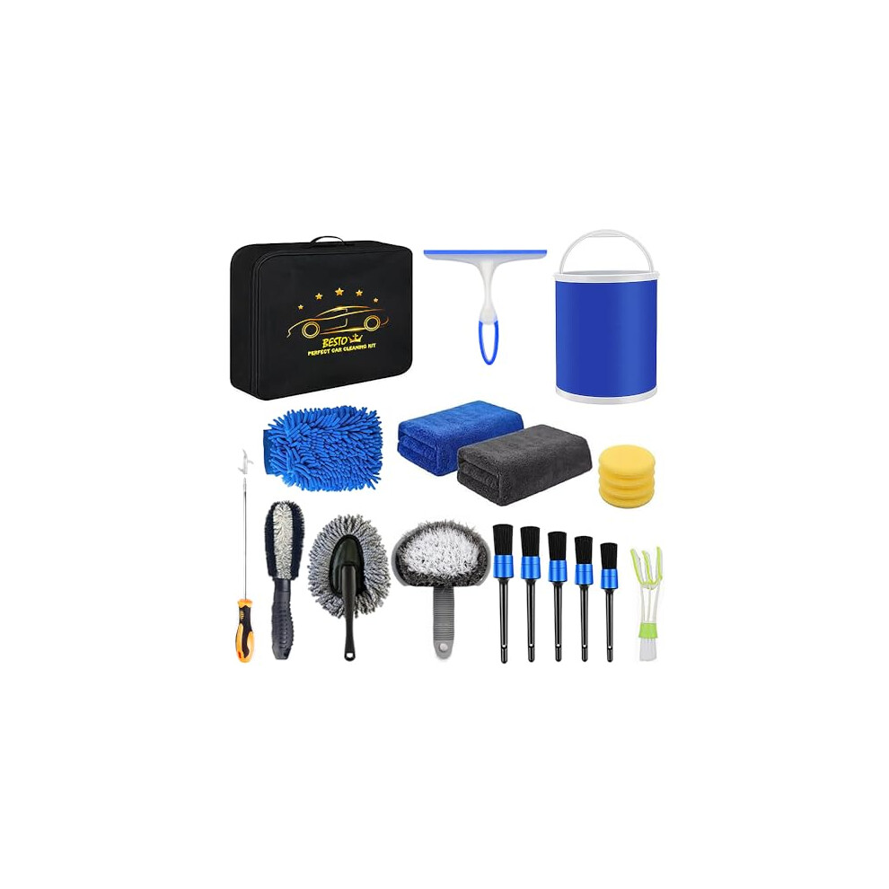 18Pcs Car Wash Cleaning Kit with Wash Mitt Sponge Towels, Tire Brush Tool Set,