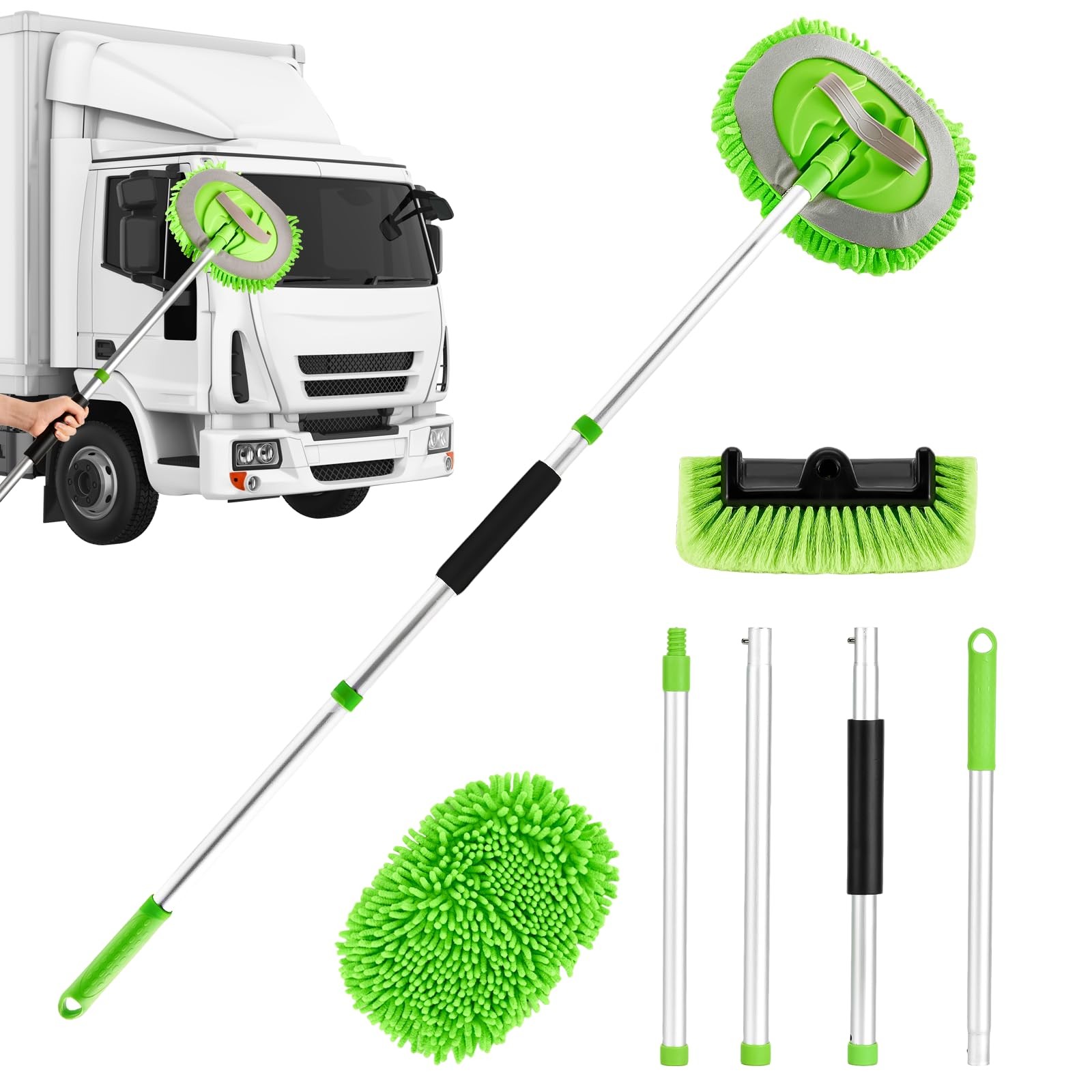 Iptienda 61 Inch Telescopic Car Wash Brush Kit,2-in-1 Cleaning Mop Green