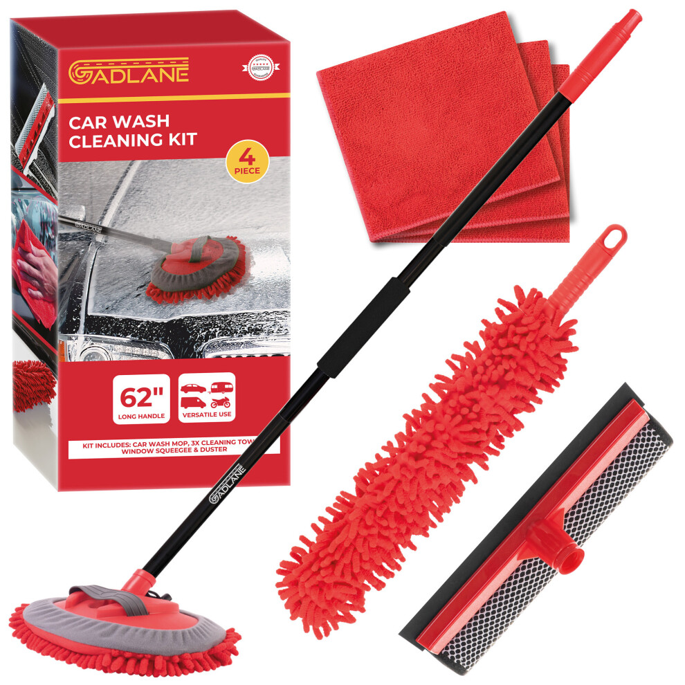 GADLANE 4 Pcs Car Cleaning Kit Wash Brush Collapsible 62" Long Handle Household
