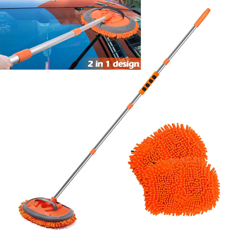 GREATCOOL 62" Car Wash Brush Kit With Super Long Handle 2 in 1 Chenille Microfiber Mop Cleaning Truck Caravans and Household Scratch Free 2 x Mop Head