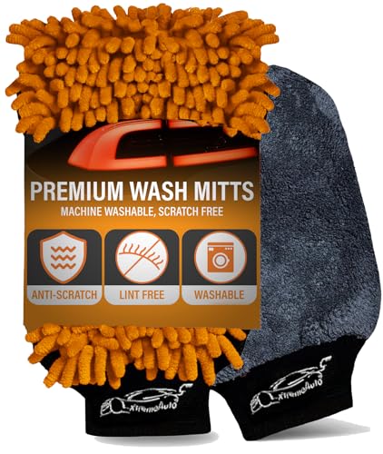 Xtremeauto Premium Car Wash Mitt Double Pack - Professional Cleaning Microfibre Sponge Mitts, Bug Shifter Set, Anti-Scratch Microfiber Detailing Glove