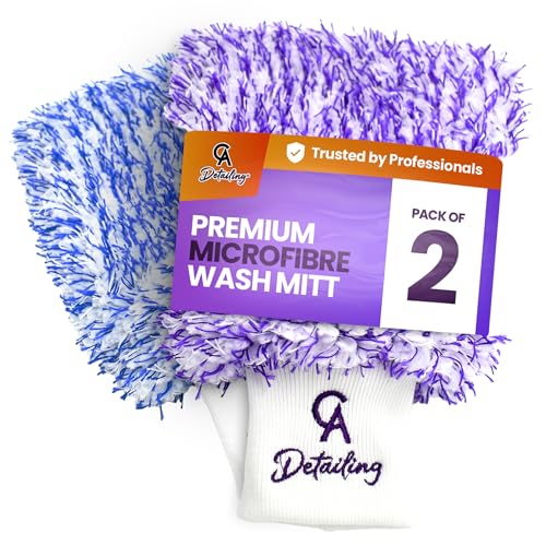 CA Detailing Premium Car Wash Mitt | 2 Pack Cleaning Wash Mit | Ultra Soft, Anti Scratch Cleaning Gloves with Elastic Wrist Cuffs | Better Than Car Wash Sponge