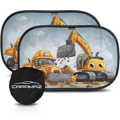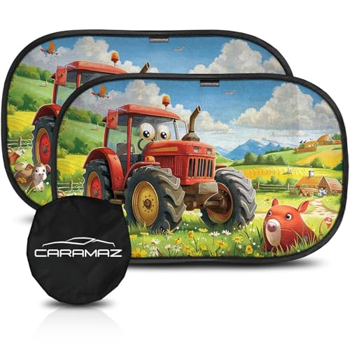 Car Window Shades for Baby with Certified UV Protection - Optimal Darkness with Suction Cups in Universal Size 51 x 31 cm - Tractor Design - Pack of 2