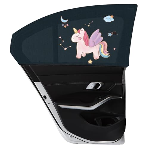 Asstikoo Car Window Shades for Baby, Car Sun Shades with UV Protection, Universal Fit Stretchable Side Window Sunscreen Sun Shades with Unicorn Motifs, Rear Window Shades For Kids (2 Pack)(55*100cm)