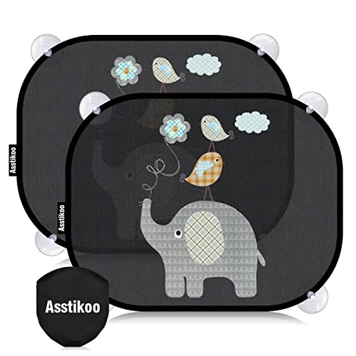 Asstikoo Car Window Shades for Baby with UV Protection, Car Sun Shades for Kids, Sun Visor Cars Baby, Side Window Sunshades with Cute Animal Motifs, 51 * 31 cm, Set of 2