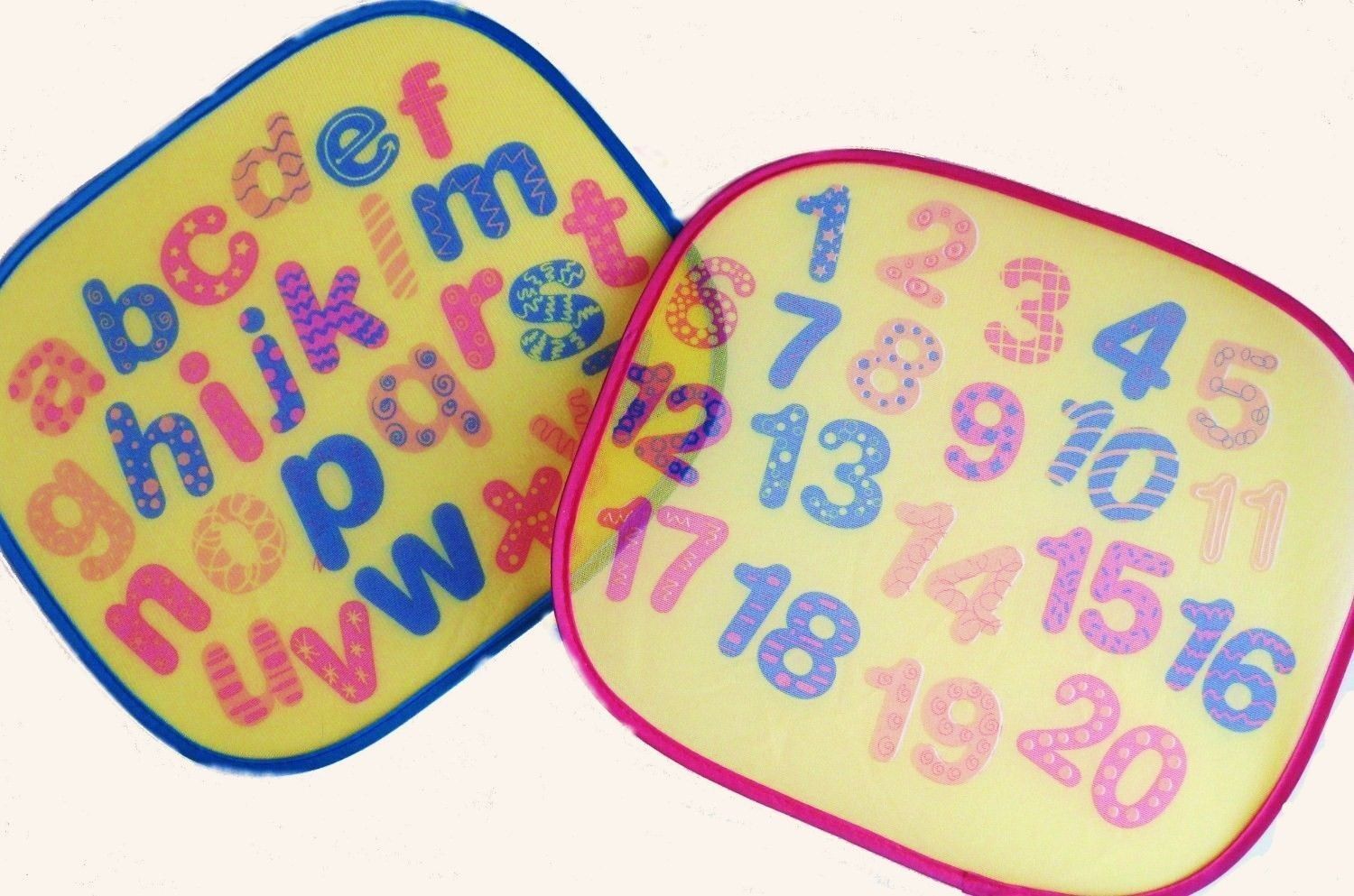 Set Of 2 Printed Car Window Shades Alphabet Numbers Children Knowledge Fold able