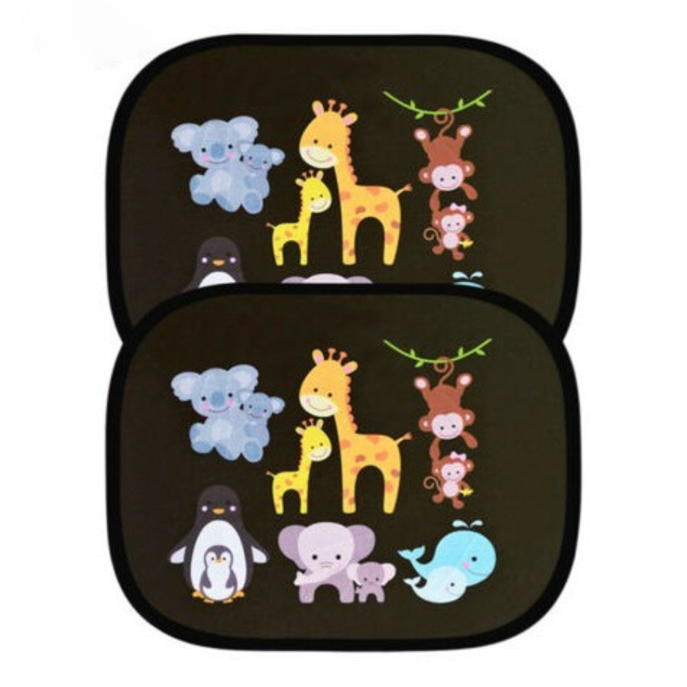 Car Window Shades for Baby - Protect from UV Rays - With Suction Cups in Size 48 x 30 cm - Animal Design - Pack of 2