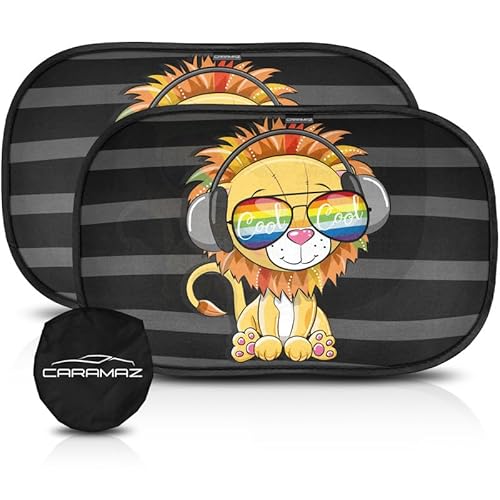 Car Window Shades for Baby with Certified UV Protection - Optimal Darkness with Suction Cups in Universal Size 51 x 31 cm - Lion Design - Pack of 2