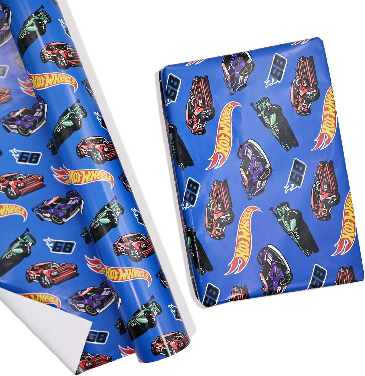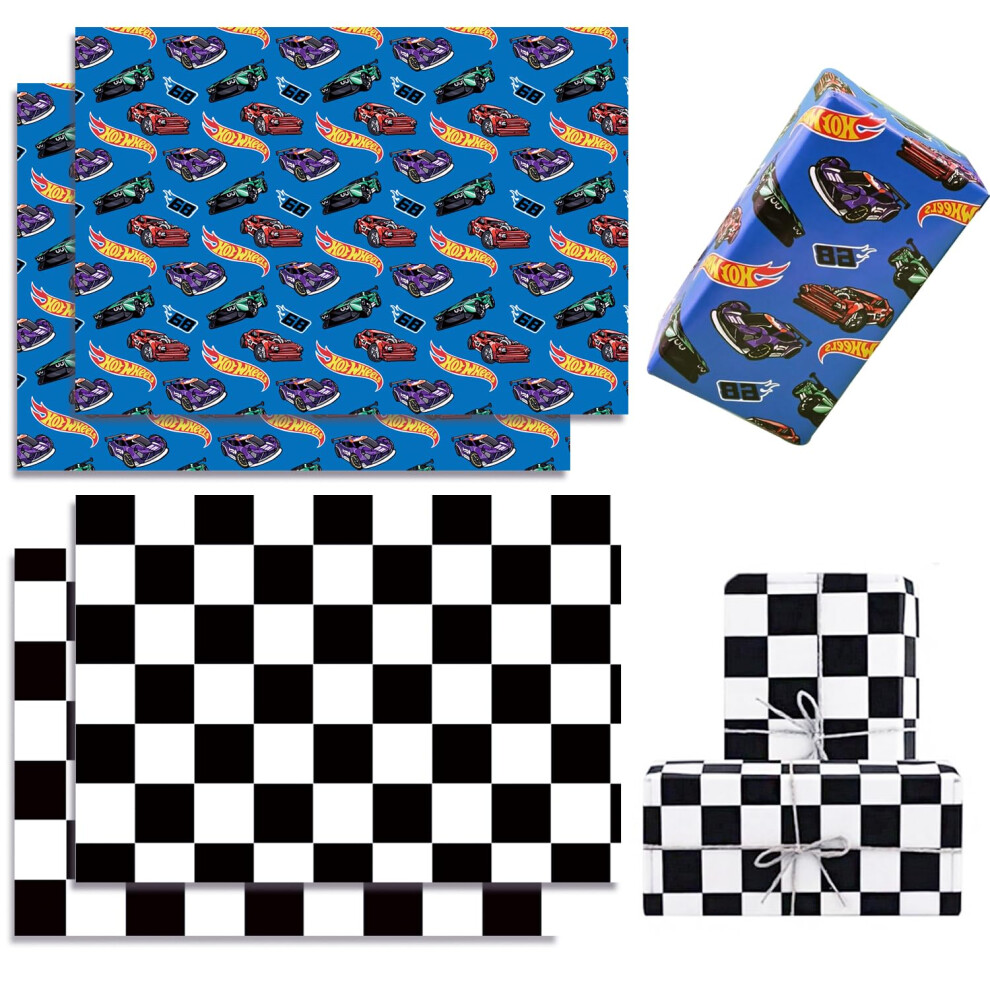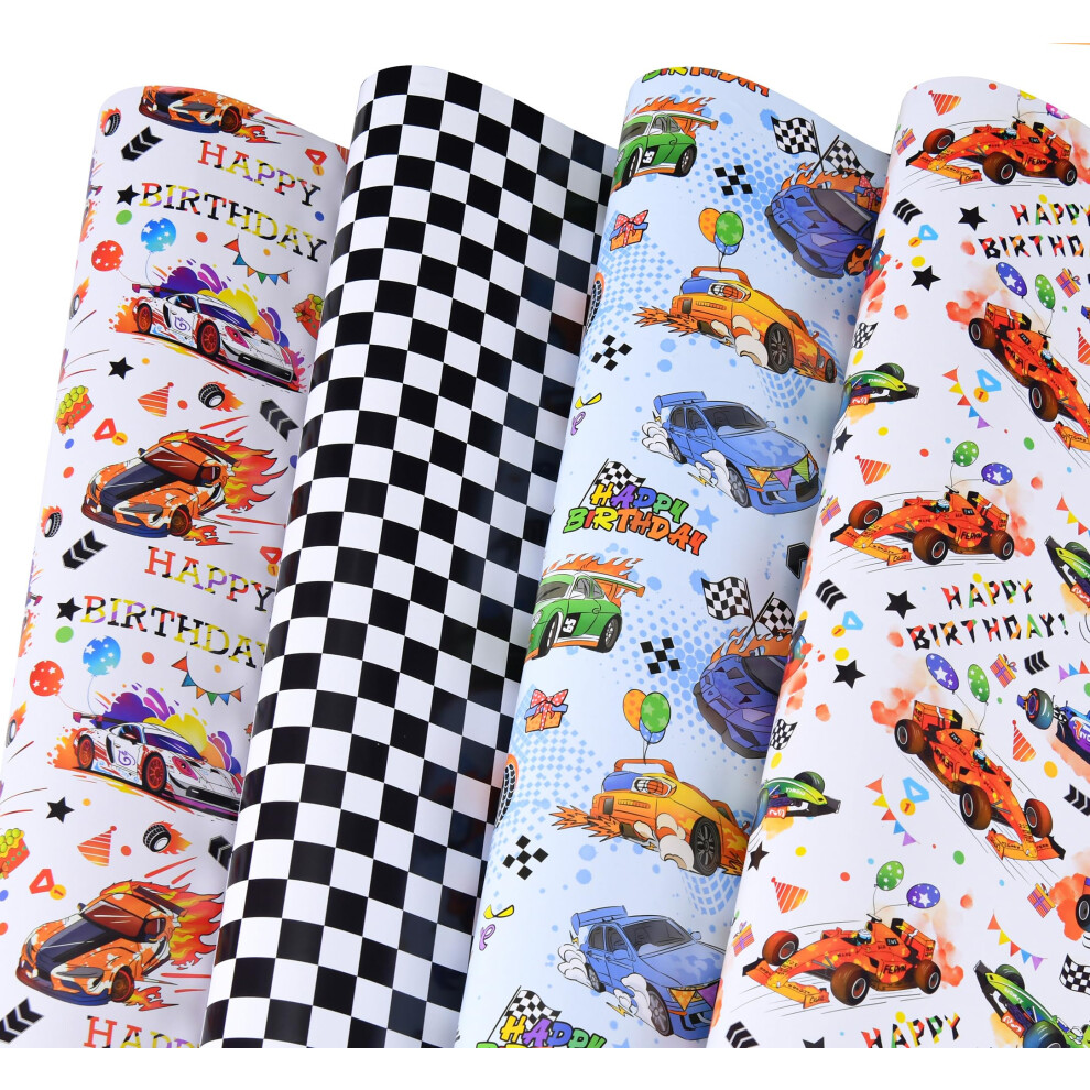 Titiweet Race Car Wrapping Paper - 6 Large Sheets Race Car Checkred Flag Birthday Wrapping Paper for Boys Girls 39.4 x 27.6 Inches Per Sheet (Race Ca