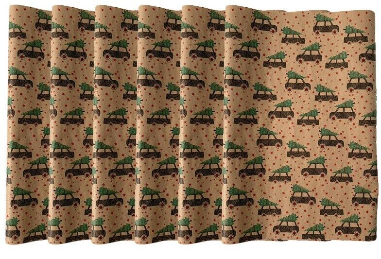 Christmas Wrapping Paper 6 Rolls 12m Of Christmas Car & Tree Design Gift Wrap