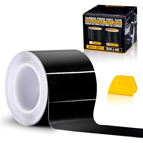 Spurtar Gloss Black Vinyl Wrap Tape with Tool- 5CM x 6M Adhesive Car Wrapping Paper Anti-Scratch Car Door Sill Protector Vehicle Sill Protectors Strips (High Gloss,2inchx20 Ft)