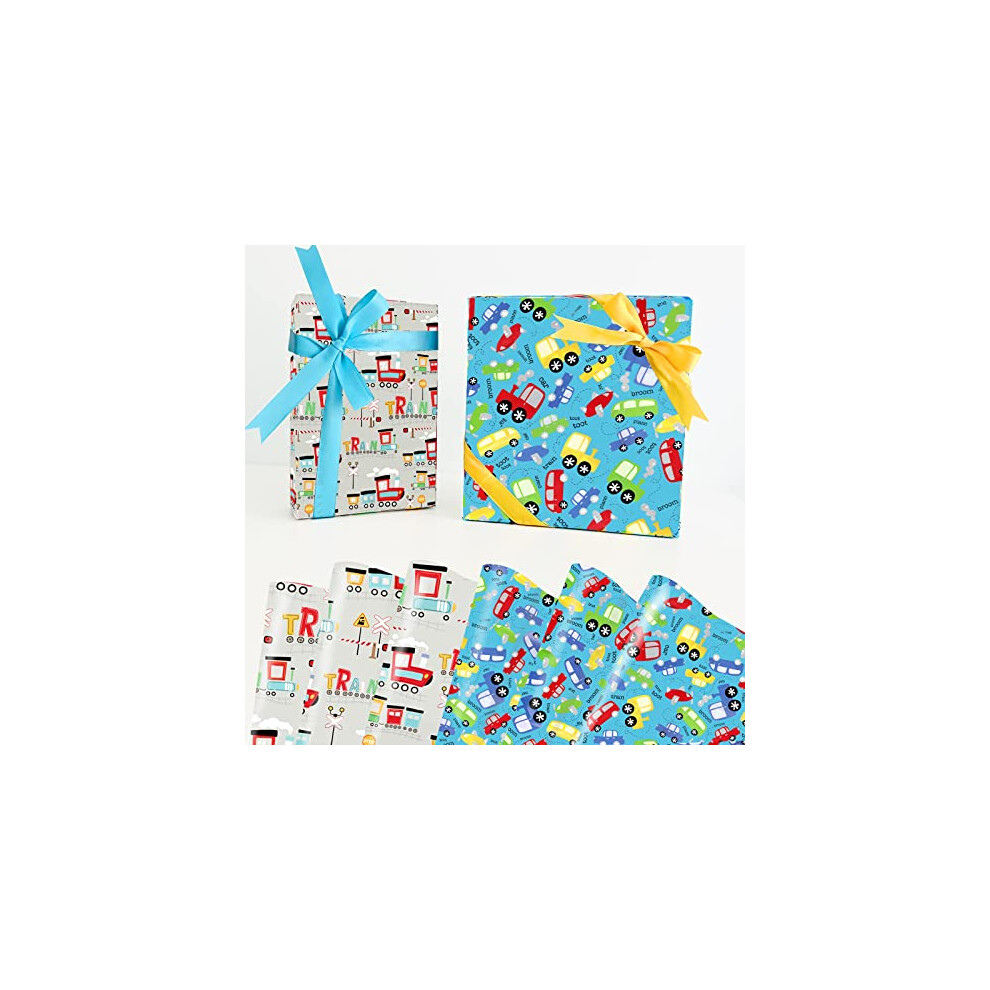 Car Wrapping Paper 4 Sheets, Cartoon Gift Christmas Wrapping Papers, Wrapping Paper f
