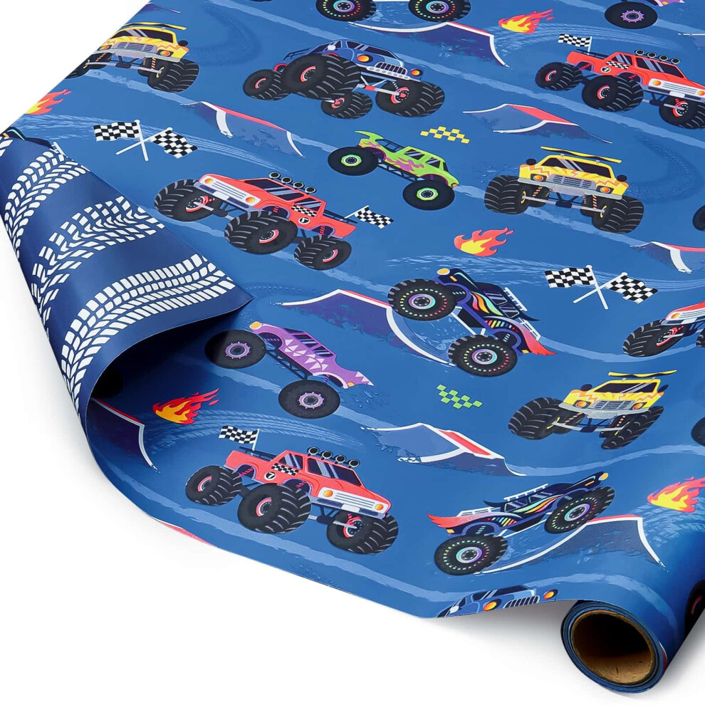 WERNNSAI Monster Truck Wrapping Paper - 1 Roll Race Car Birthday Wrapping Paper for K