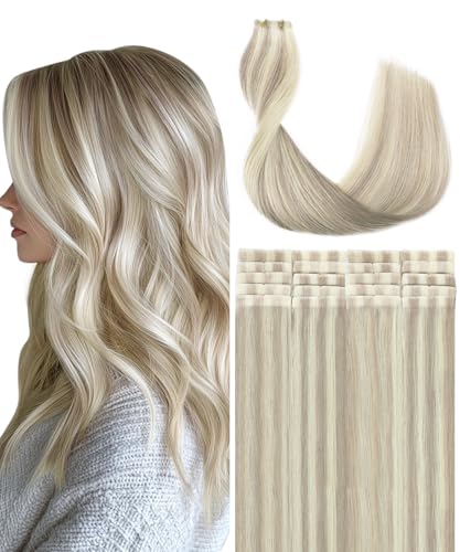 SURNEL Injected Tape in Hair Extensions 16 Inch Colour 18 Caramel blond 613 Bleach Blond Natural Real Hair Extension Upgraded Seamless Remy Invisible Skin Weft Straight 20 Pcs 35g(#18P613-16)