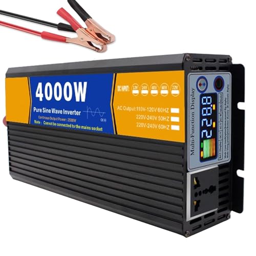 SNBGRYE Pure Sine Wave Inverter 3000w 4000w 5000w 6000w 8000w, DC (12v/24v/48v/60v/72v) To AC (110v/220v) Power Converter, Lcd Display, For Caravan/Camping/Travel,4000W-12Vto110V