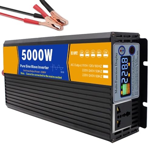 SNBGRYE Pure Sine Wave Inverter 3000w 4000w 5000w 6000w 8000w, DC (12v/24v/48v/60v/72v) To AC (110v/220v) Power Converter, Lcd Display, For Caravan/Camping/Travel,5000W-12Vto110V