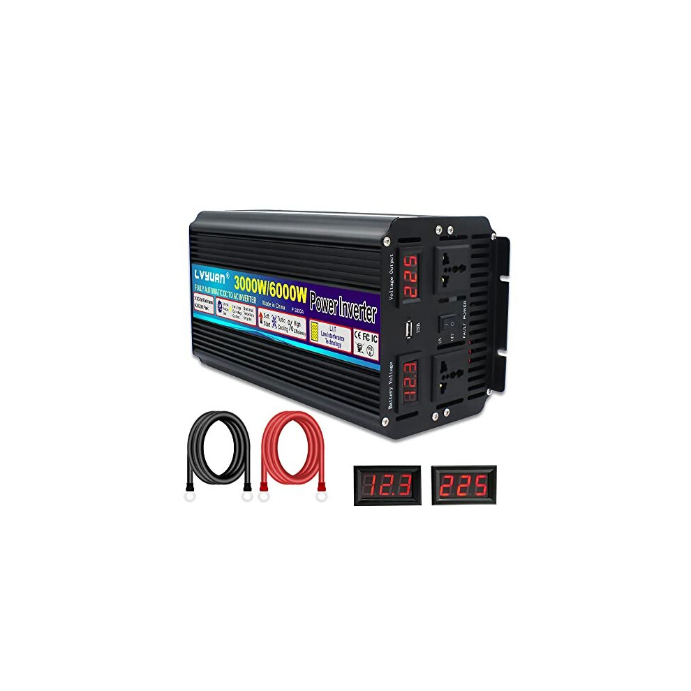 Cantonape Power Inverter 3000W/6000W Peak DC12V to AC 230V 240V Converter Universal sockets with Soft Start, Voltage Display for Car Caravan Camping