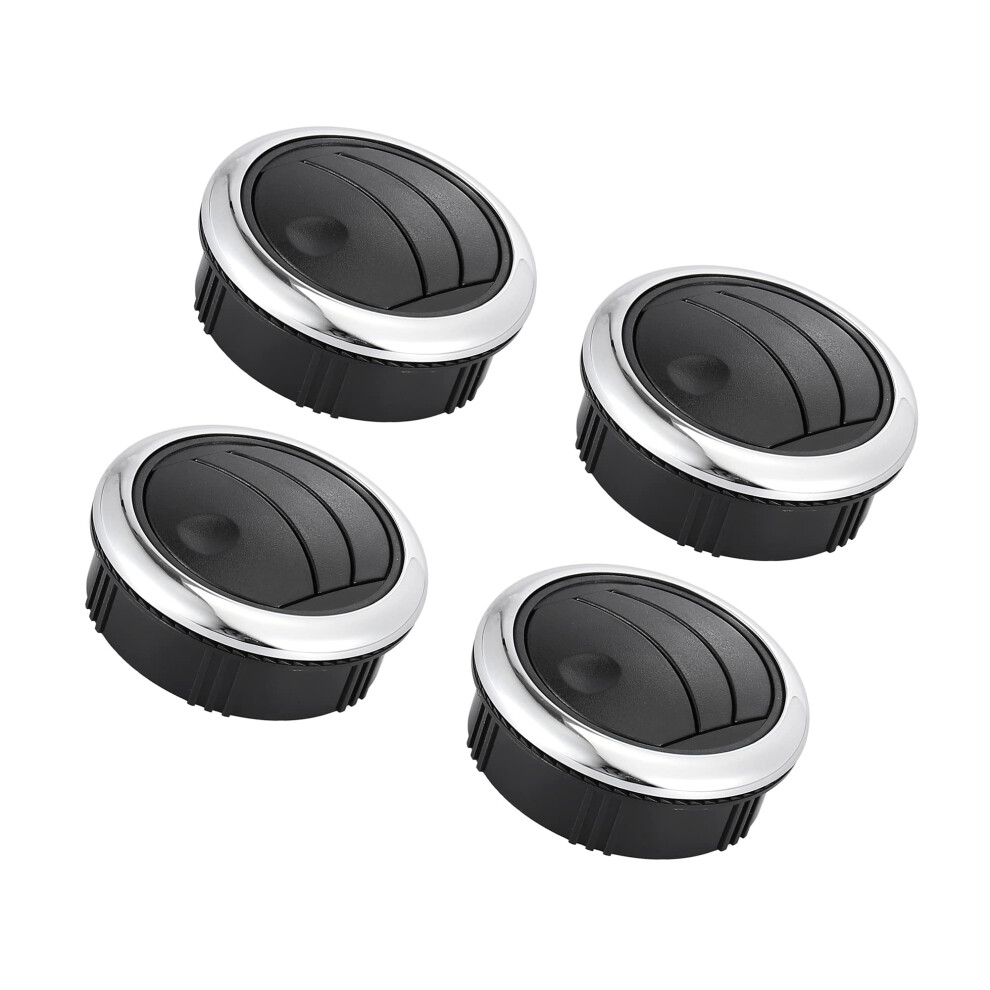 Universal Round AC Air Outlet Vent Louvered Dashboard Knob, 87mm ABS for RV Bus Boat Yacht Caravan, Black Silver Tone, 4Pcs