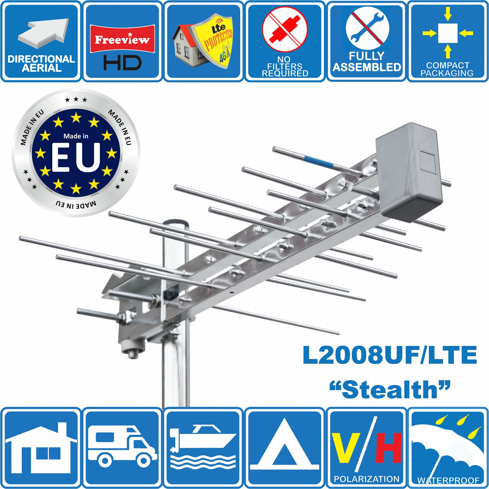 CARAVAN BOAT DIGITAL ACTIVE DIRECTIONAL HD TV AERIAL FREEVIEW 5G FILTER 2 WAY