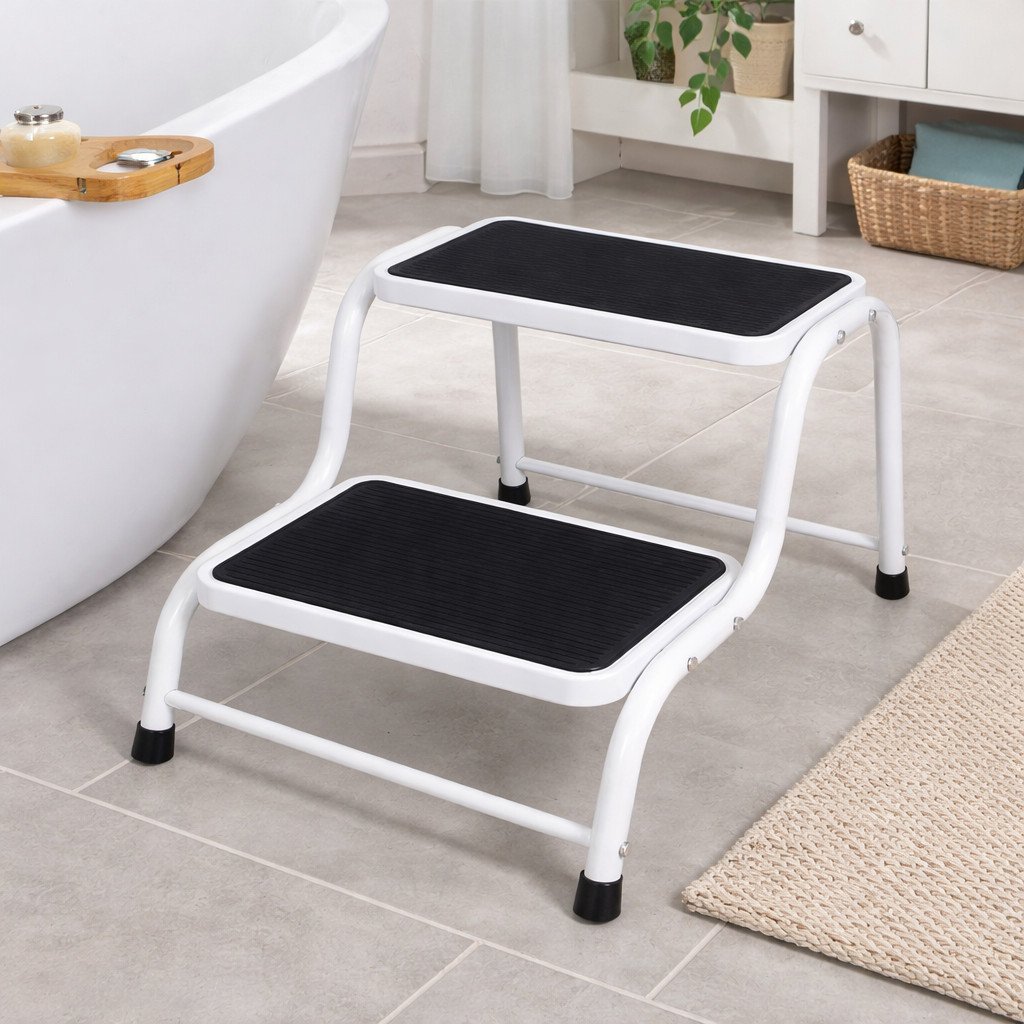 Caravan Double Step Stool Steel Non Slip Rubber Mobility Support Tread Safety