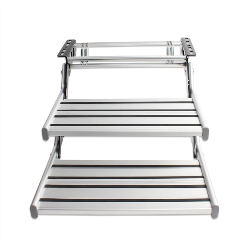 Rustproof Aluminum RV Folding Step, Double Layer Camper Caravan Step Replacement, Easy Manual Assembly