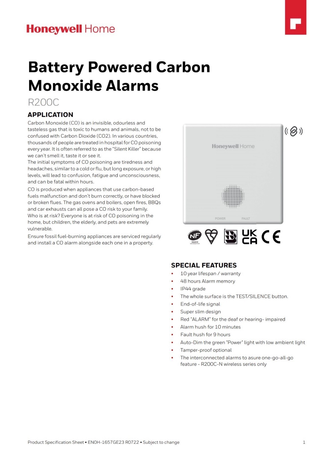 Honeywell R200 CO Carbon Monoxide Detector Alarm | 10 YEAR LIFE | Genuine Part