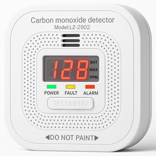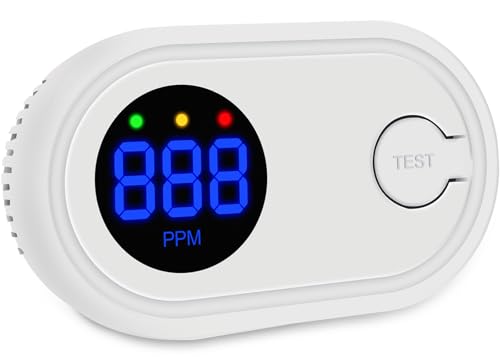 Carbon Monoxide Detector, Carbon Monoxide Alarm, Detector with LED Display (PPM Value Visible at All Times) and 85 dB Audible and Visual Alarm.