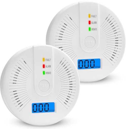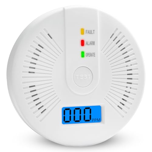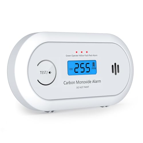 Scondaor Carbon Monoxide Alarm Detector, 10-Year Life CO Alarm Detector with Digital LCD Display, Replaceable Battery Operated (3 AA Battery Included)