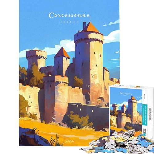 France Jigsaw Puzzle 1000 Piece France Carcassonne Castle Aude Puzzle Game Artwork Travel Souvenir 38x26CM