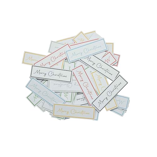 50 x Merry Christmas Card Toppers Red and Green Sentiment Labels Stickers for Card Making kits and Scrapbooking Supplies