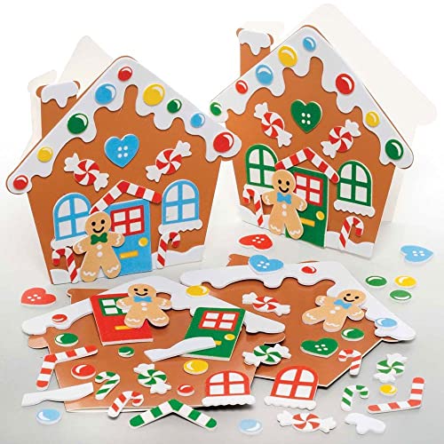 Baker Ross FE939 Gingerbread House Card Kits - Pack of 6, Card Making Kit for Kids, Make Your Own Christmas Cards, Ideal Festive Arts and Crafts Project