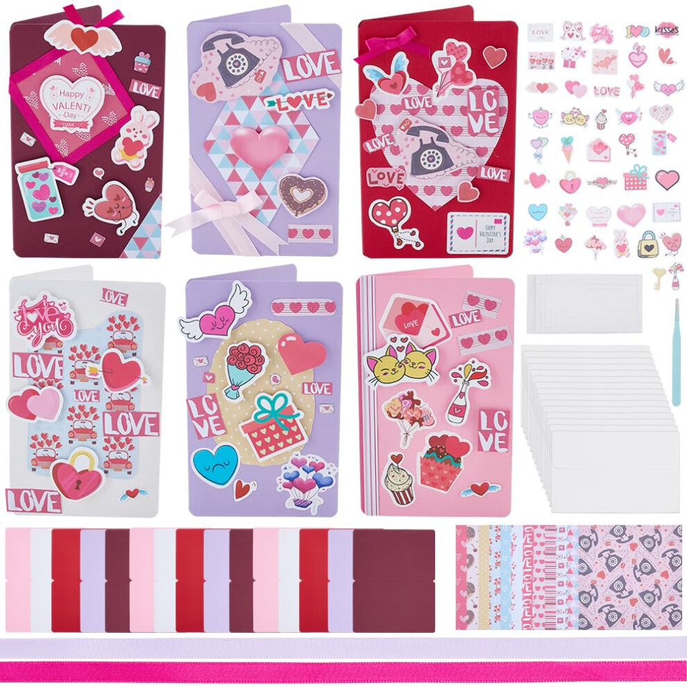 WEBEEDY 15 Sets Valentines's Day Card Making Kits Complete DIY Greeting Card Sets with Blank Cards, Stickers, Envelopes for Beginners Birthday Christ