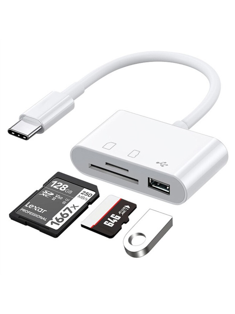 Card Reader for Phone/Laptop/, Three Card Slots Reader Supports TF Card,1597