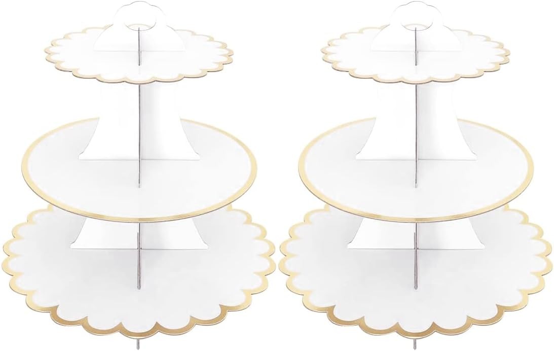 2 Pack Cake Stand 3 Tier Cupcake Dessert Holder Cardboard Round Tower White